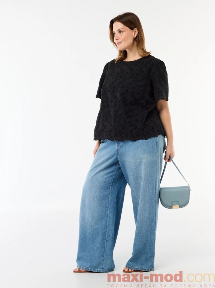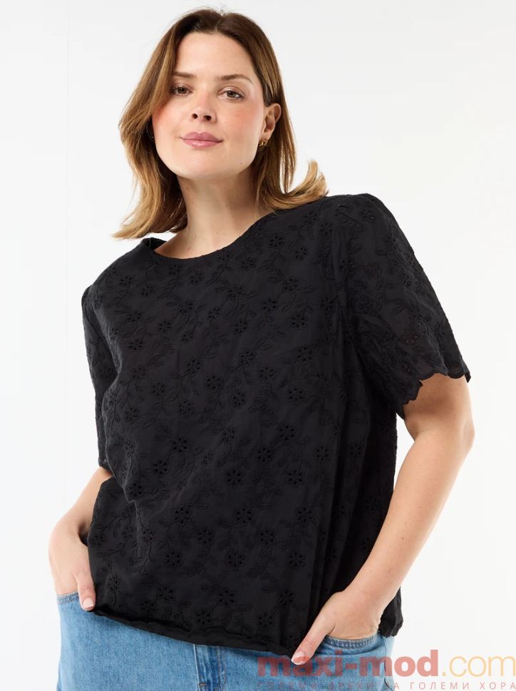 Дамска блуза с бродерия и капси.