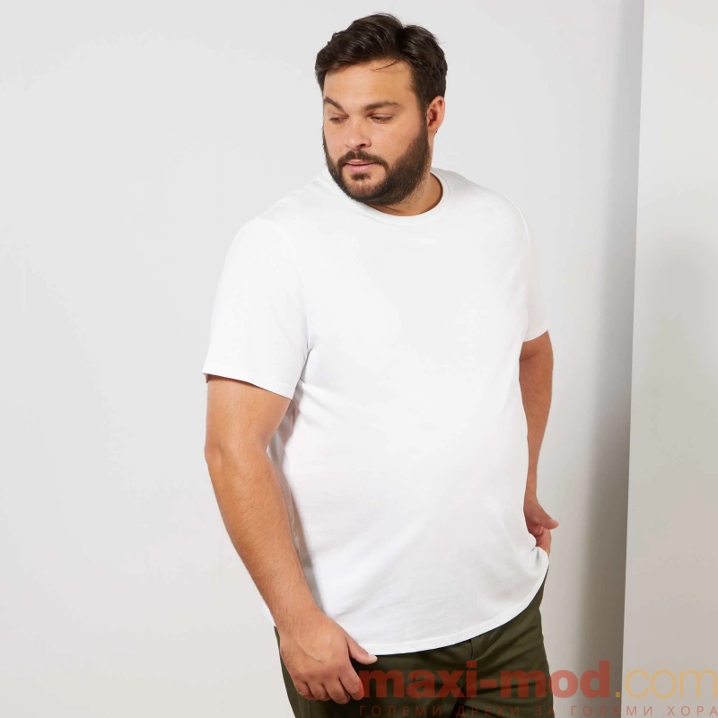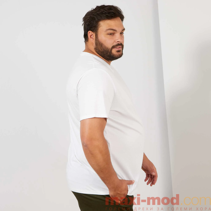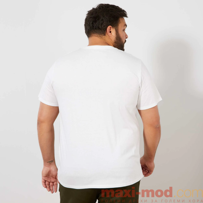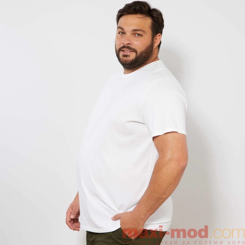 Бяла мъжка тениска голям размер. Подходяща за ежеднвието и свободното време.