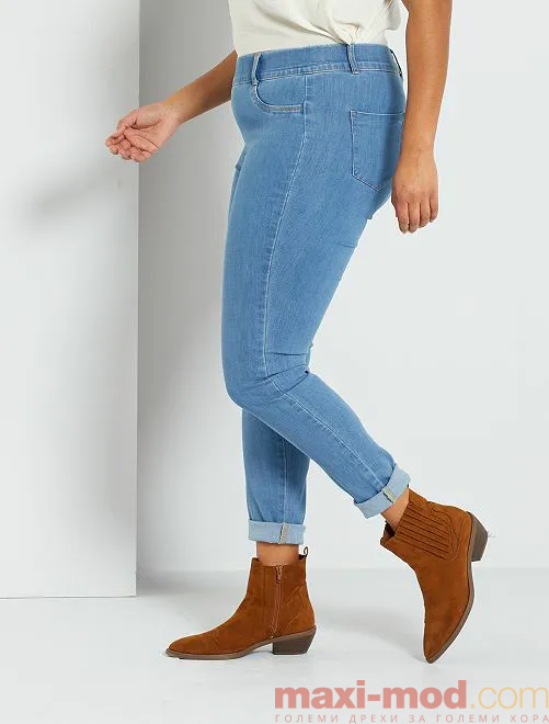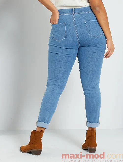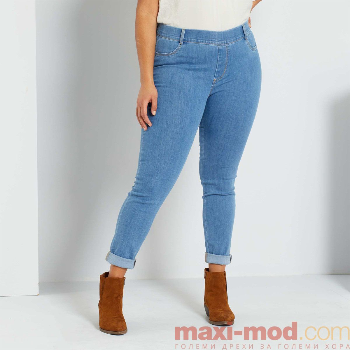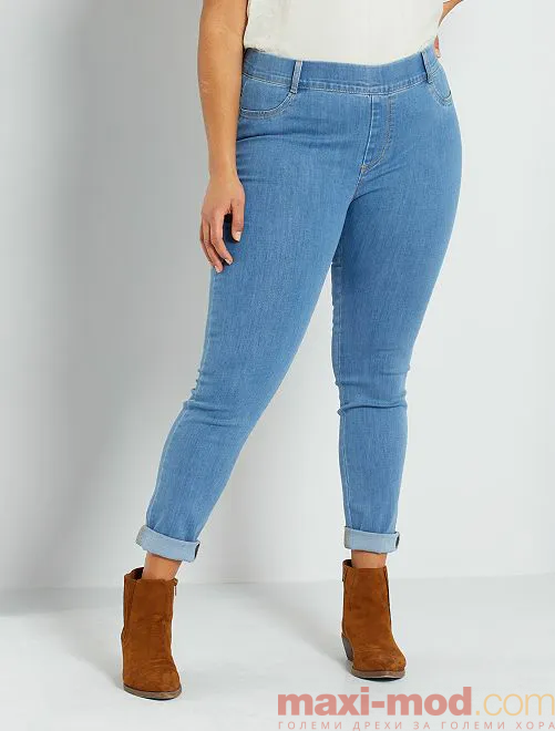 Ластични дамски дънки макси размер. Тесни, много плътно прилепнали дънки макси размер.