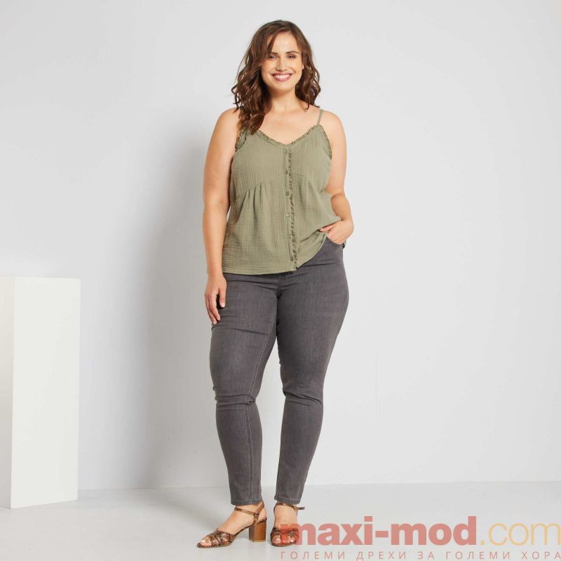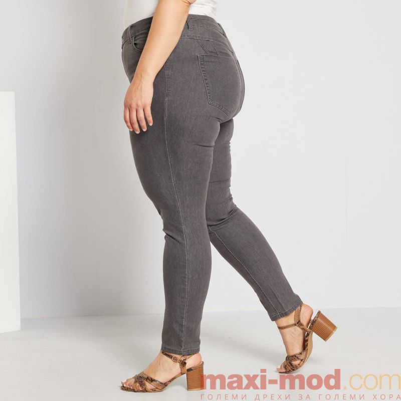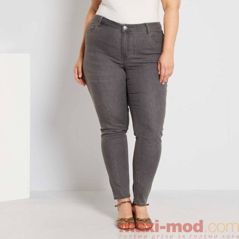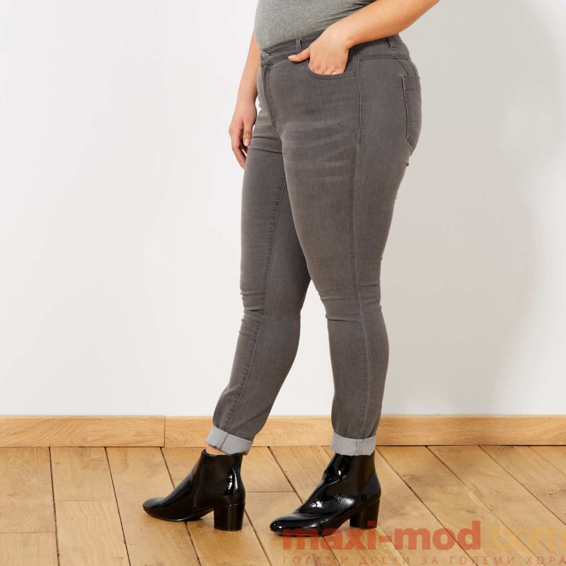 Ластични дамски дънки макси размер. Тесни, много плътно прилепнали дънки макси размер. Подходящи за ежедневието и свободното време.