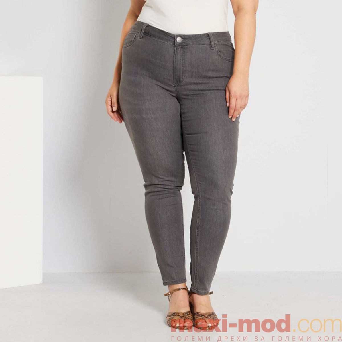Ластични дамски дънки макси размер. Тесни, много плътно прилепнали дънки макси размер.